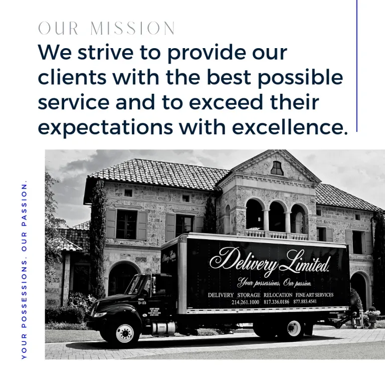 Over the last 40 years, our company has grown from a Dallas garage apartment into a global name, serving the world’s most discerning and astute clients. We have a full warehouse and storage facility so that we can meet your every need. Today, we are proud to say that Delivery Limited is synonymous with high-end estate relocation, delivery, and installation of fine art and antiques. We also offer showroom-style, air-conditioned, and fully climate-controlled storage for residential, commercial, and design industry patrons. We have served CEOs, celebrities, captains of industry, and captains of the gridiron. Now, let us serve you.