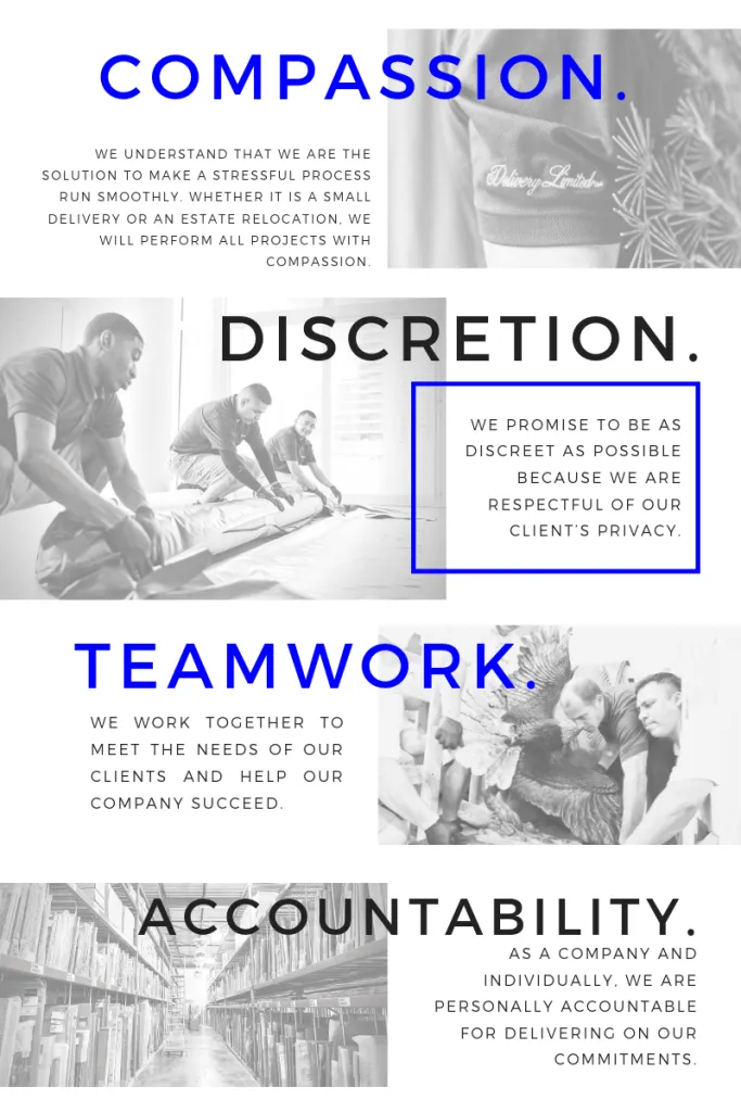 We know the moving process is stressful and complicated; therefore, we make the process as smooth and stress-free as possible. We are a full-service, white-glove operation with the capability to pack up and transfer everything from Boehm porcelain to Hummel figurines to designer shoes. Our team can lay rugs, hang artwork, and even make the beds. Our clients don’t have to lift a finger. Today, we work to emulate the idea that Delivery Limited exists to serve our clients because we are a service company that truly believes it.